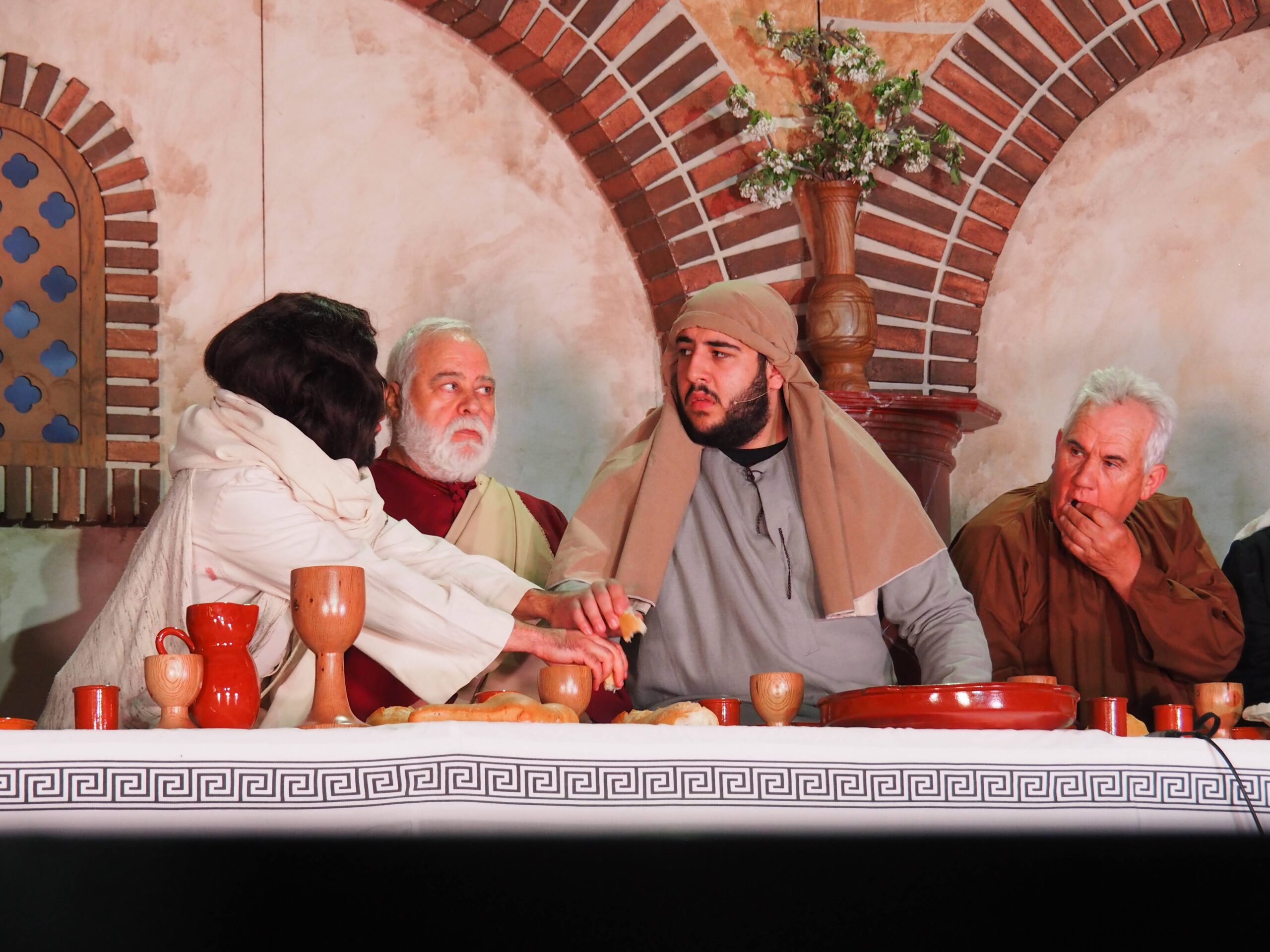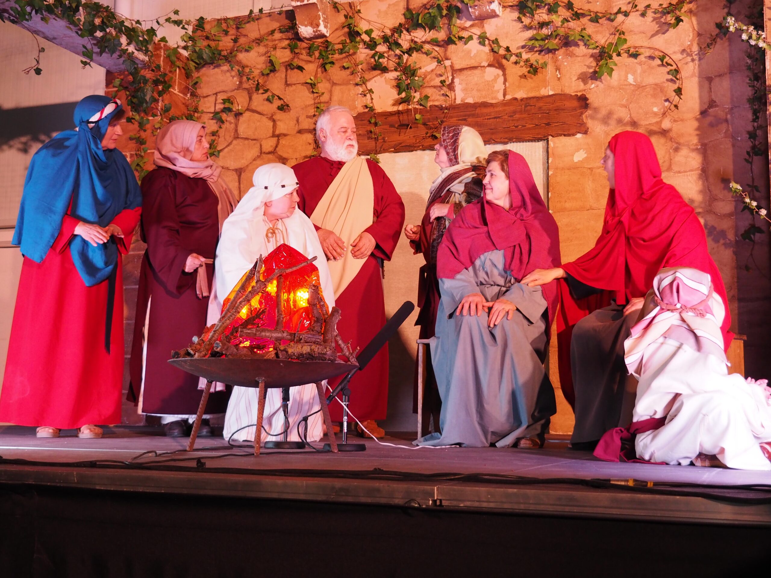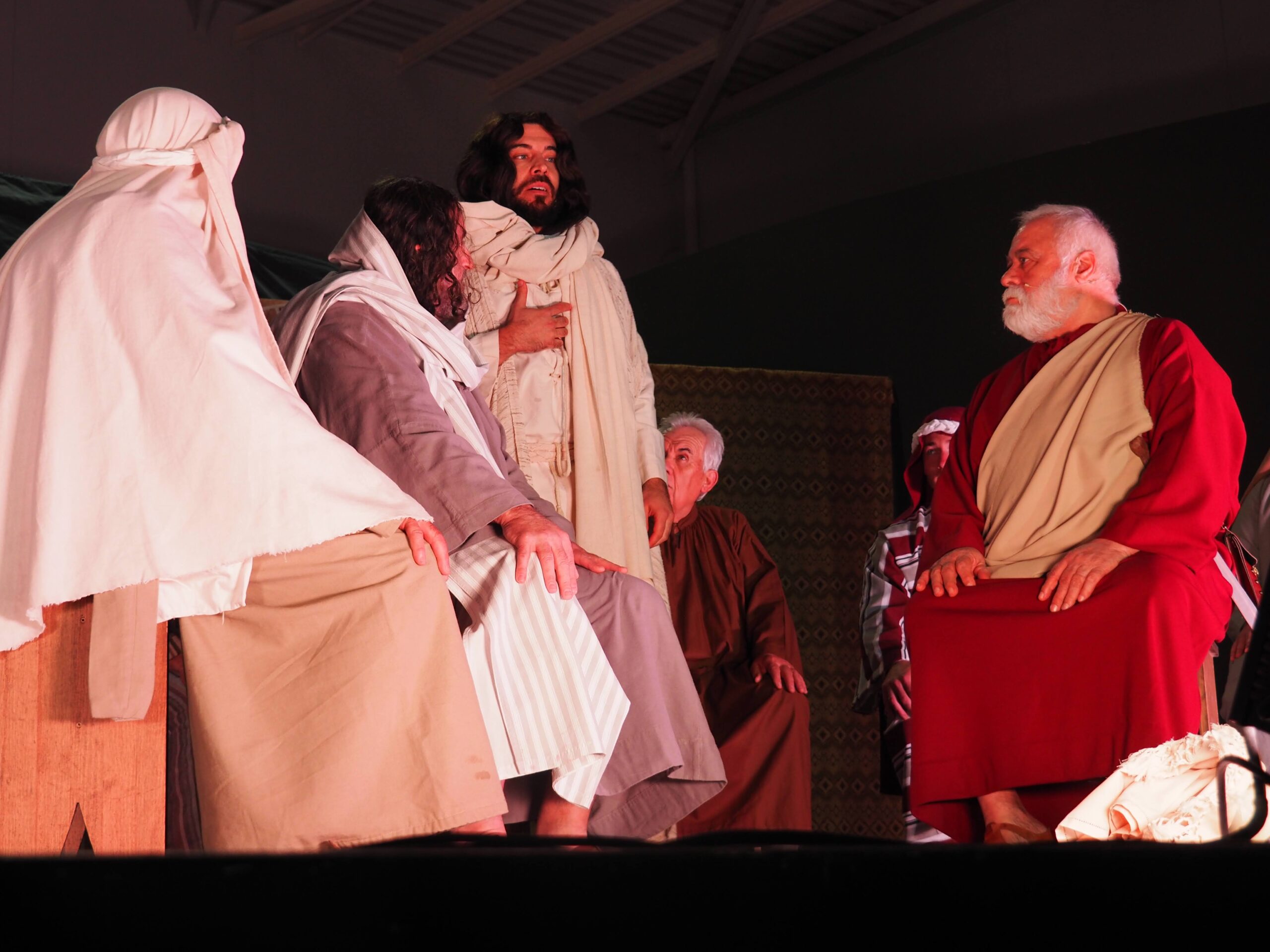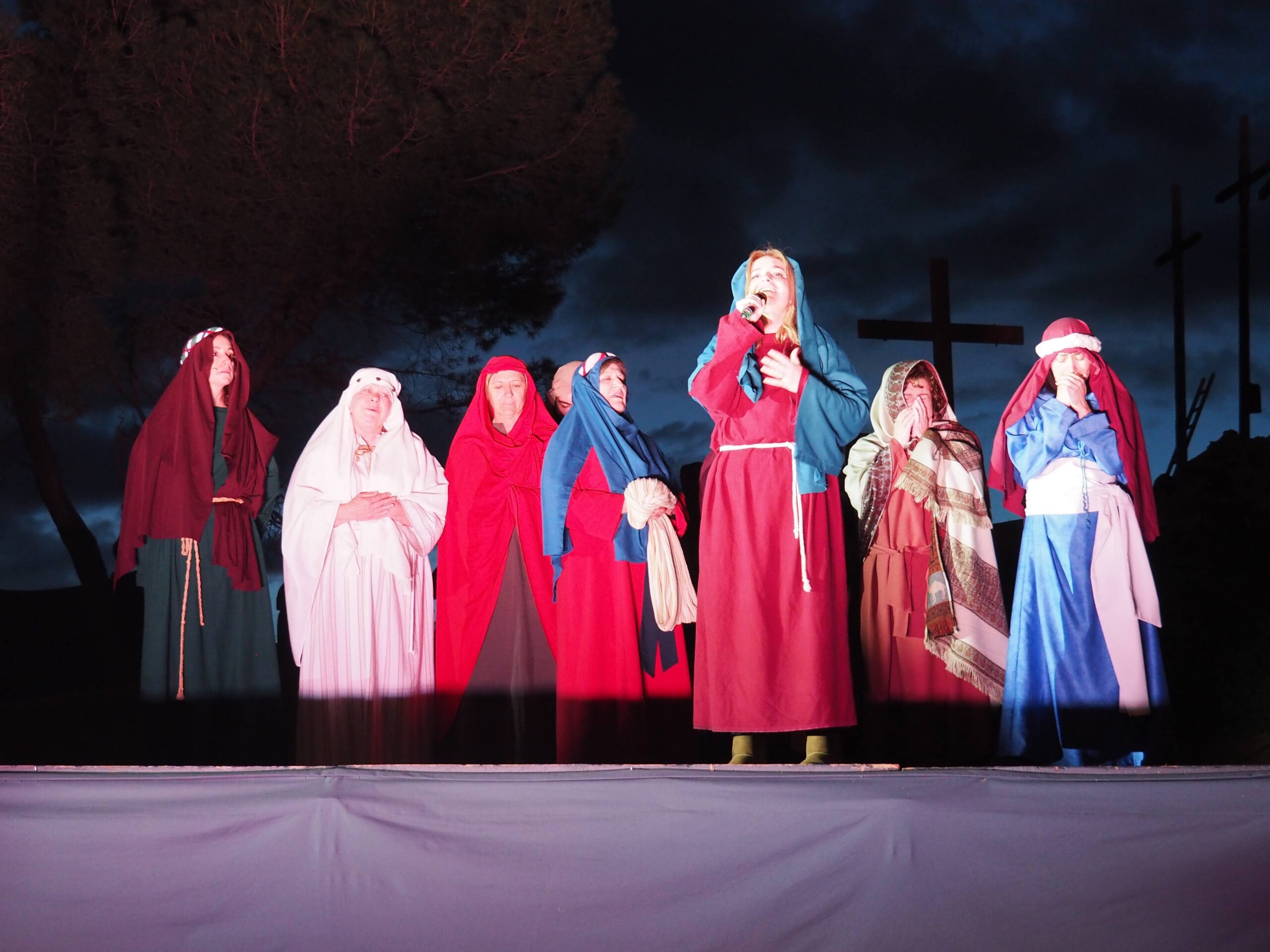 Como eran niños y niñas de catequesis, y algunos tenían muy buenas voces, se consideró adecuado seguir el guión del Auto Sacramental de Manuel Muñoz Hidalgo, “Cantiga a la Pasión de Nuestro Señor Jesucristo”. La representación se llevó a cabo en la Iglesia, dividiendo los espacios con decoración sencilla para recrear las escenas: La Santa Cena, La Oración en el Huerto, el Juicio del Sanedrín, Pilatos, la Crucifixión y la Resurrección. Con gran esfuerzo, ilusión y no pocos nervios, las primeras representaciones se realizaron en 1993 y 1994.